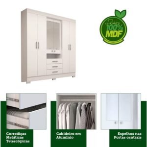Guarda-Roupa Débora Larg. 1.78m C/Espelho 6 Portas 3 Gavetas