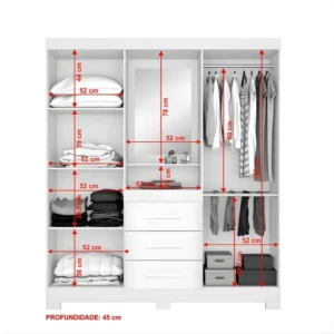 Guarda-Roupa NT 5015 Larg. 1.61m 4 portas 3 Gavetas