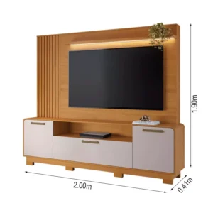 Home Apego Larg. 2.00m C/Luminária LED e Detalhe Ripado Para TV até 65″