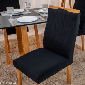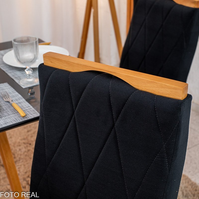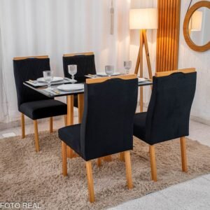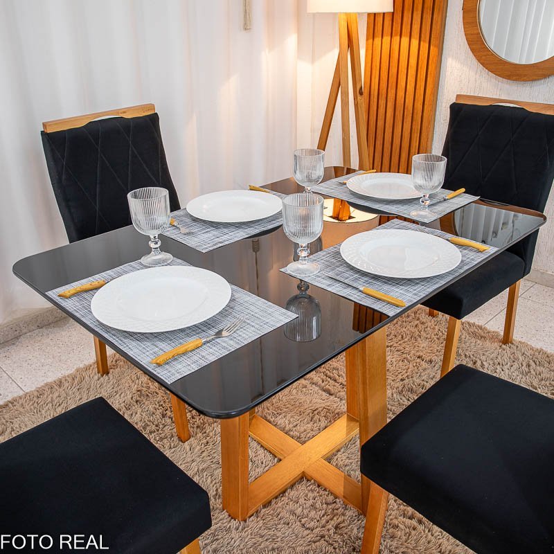 Mesa de Jantar Pedro Mel Tampo Vidro Preto 120×80 4 Cadeiras Lisboa Veludo