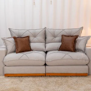 - Encosto: Reclinável em diferentes posições e 100% fibra de silicone. Além disso, acompanha quatro almofadas decorativas